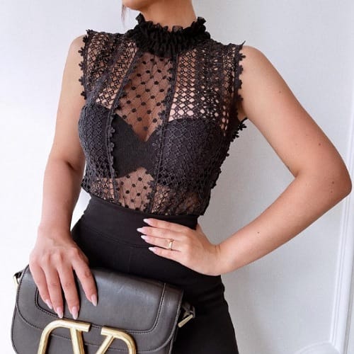 BODY CORSET EM TULE ESTAMPA DIGITAL PRETO